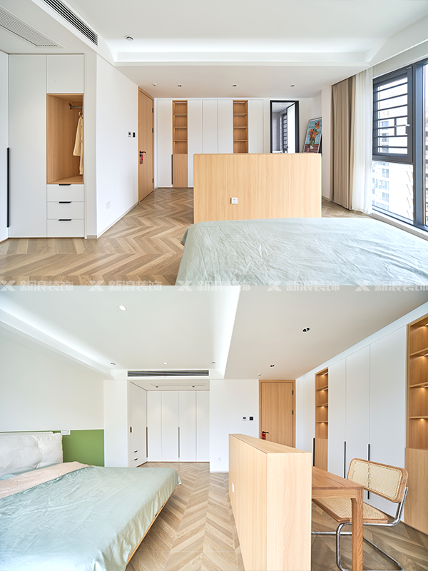 #新浪裝飾#麗爾曼頓高端全屋定制#長沙裝修#主臥套房設計#現代日式#魚骨拼接地板#原木色系#衣帽間設計#曬曬我的梳妝臺