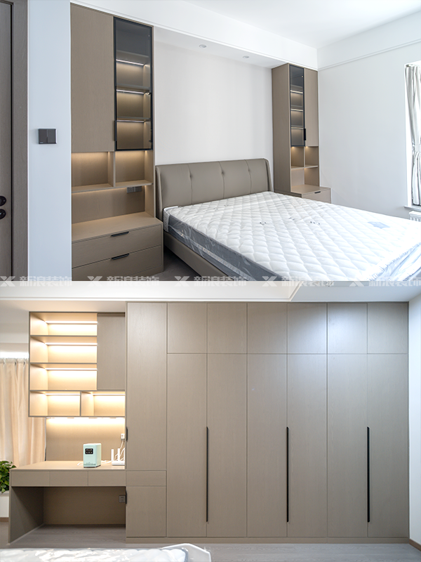餐邊柜、入戶鞋柜、定制廚衛柜、電視機柜+客廳裝飾柜,陽臺收納柜,主臥一門到頂衣柜+衣帽間,次臥衣柜,客臥衣柜;