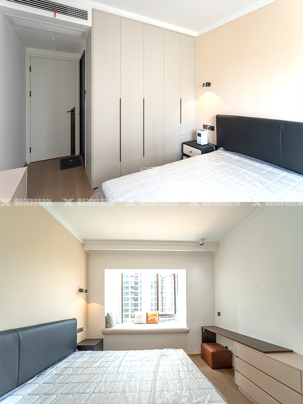 三個臥室都做了充足的衣柜收納,掛衣區(qū)、疊衣區(qū)、被褥區(qū)、小件區(qū)……整潔有條理!