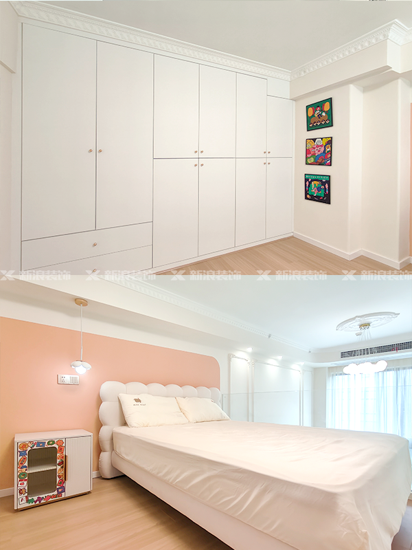 臥室靠墻做整面衣柜,滿足一年四季衣物被褥收納。