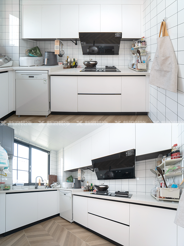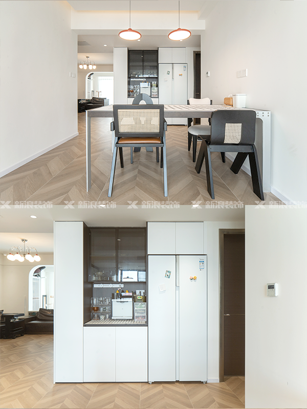 5.特意選購白色冰箱完美嵌入,和定制柜同色,整體更統一。