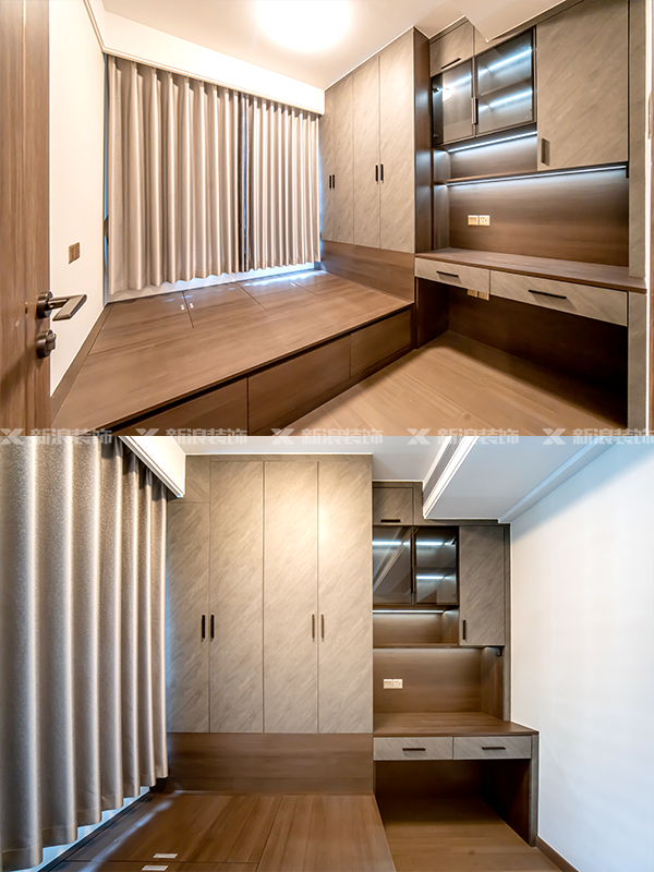 臥室衣柜、書桌和榻榻米一體化設計,最大化利用空間