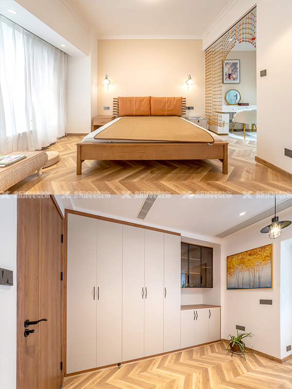 主臥室把U型衣柜改成一字衣柜,留出閱覽區。