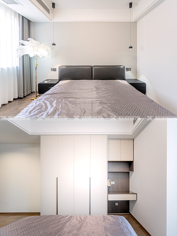 臥室衣柜采用書柜一體化設計,更大限度的利用空間