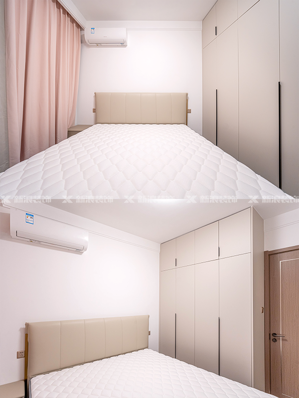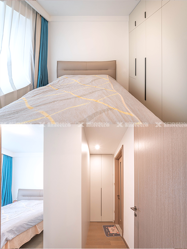 主臥做了轉角衣帽間,充分利用了主臥的空間,同時也解決了衛生間對著床頭的風水問題。