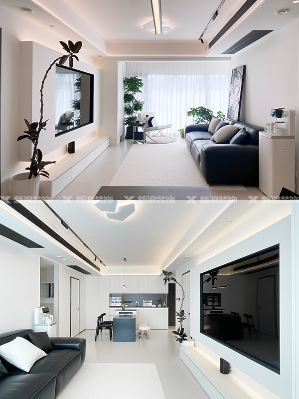 客廳整體采用珍珠白和極簡黑搭配,整體白色的墻面讓整個(gè)空間更加簡約純粹。
