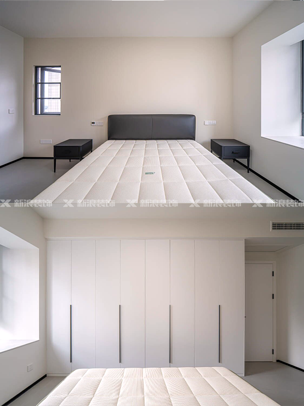 臥室做打造極簡的氛圍,床尾整墻一門到頂衣柜,簡約又高級。