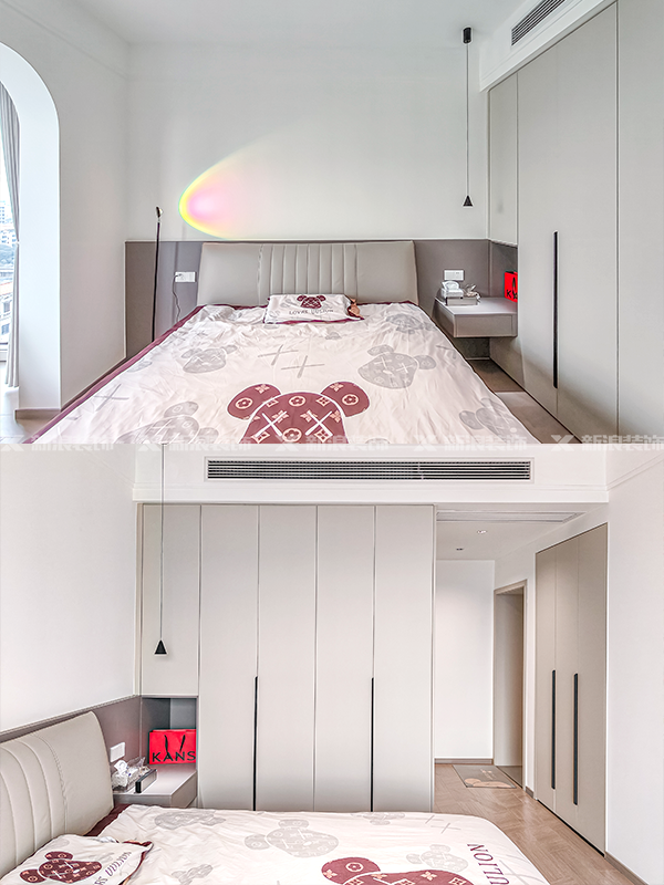 做了獨立舒適的主衛(wèi)空間,臥室也是盡可能做了多的滿墻衣柜,增加儲物。