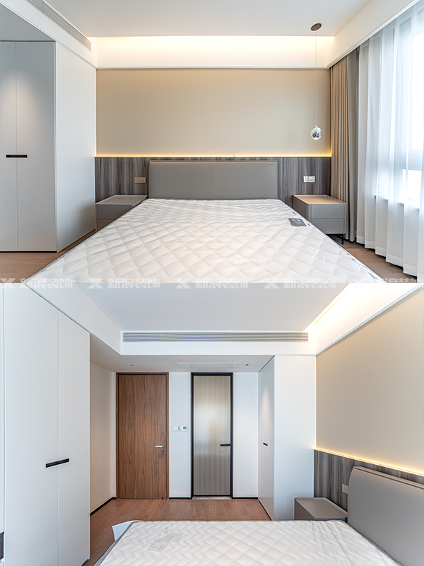 全屋門、墻、柜色調、材質、造型統一,搭配同色軟裝,風格統一不割裂。