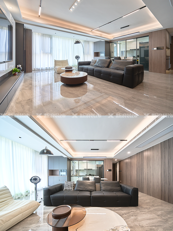 陽臺通鋪后客廳空間非常大,拆除了原有的推拉門,增大了客廳空間