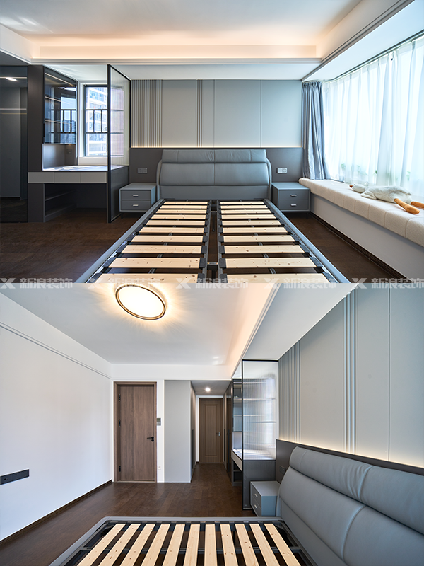 臥室衣柜做了一門到頂的衣柜,拉手用的極簡卡縫拉手,簡約又不失檔次