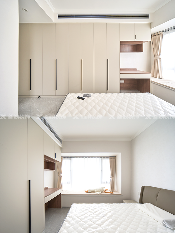 臥室柜做衣柜+書桌設計,充分利用收納空間
