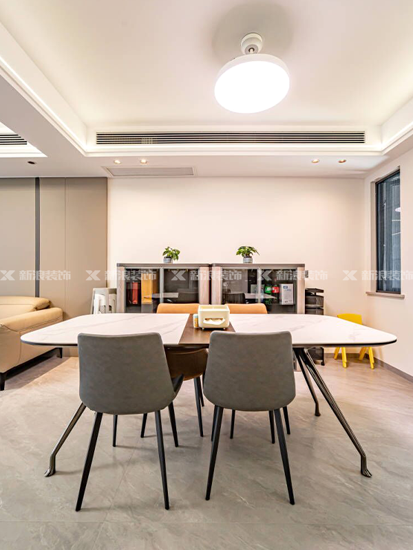 懸浮電視墻做隔斷,客廳書房自由互動,書房拆除非承重墻體做拆除門,做了開放式設計與客廳連通。