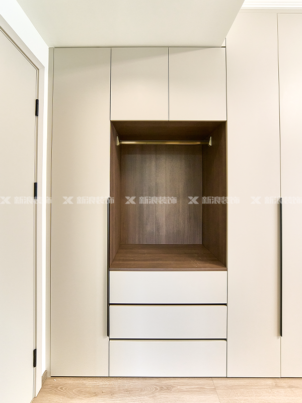 進門部分留出開放格,做次凈衣區,不常洗的大件衣服、女主人的包包等輕松收納