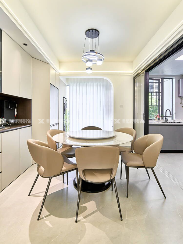 餐廳釋放了廚房空間,與陽臺打通連接冰箱立柜以及家政柜。