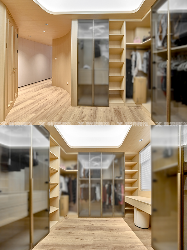 衣帽間做全開放式設計,集收納與梳妝為一體的多功能區(qū),每一處都體現(xiàn)出業(yè)主優(yōu)雅的生活品質。