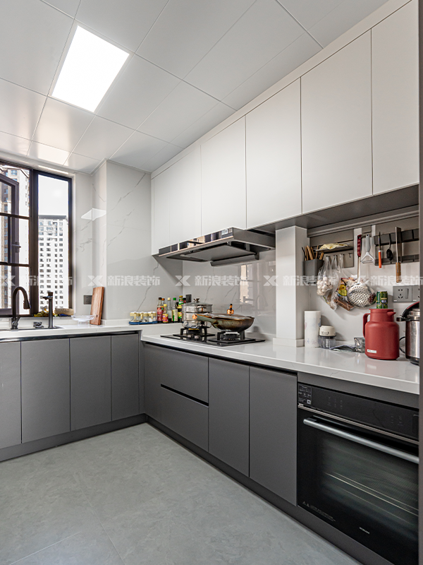 全房黑白配色,經(jīng)典耐看,門墻柜一體同色,簡潔有力,收納方面非常充足。