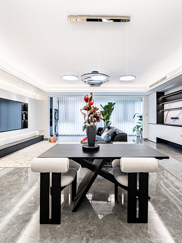 精裝交付,原有的簡約硬裝搭配極簡黑白定制和軟裝,干凈利落