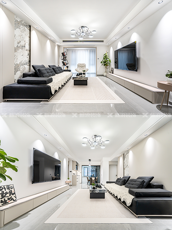 客餐廳不做復雜燈飾,主燈+氛圍燈帶裝飾,讓空間開闊,視野明亮