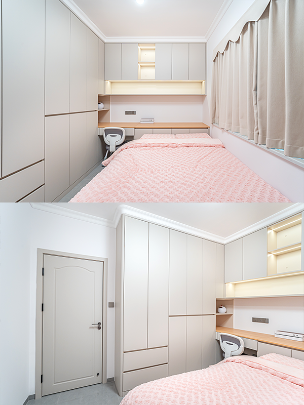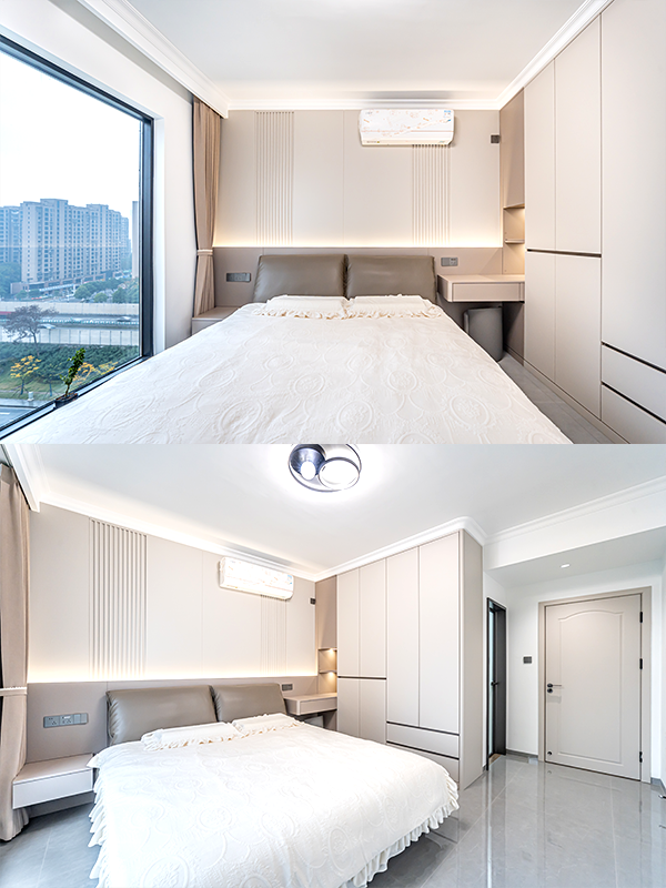 全屋高端定制顏色、材質統一,一門到頂衣柜,簡約又顯品質