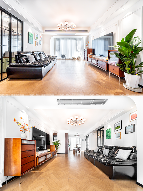 ?? 以黑白棕為主色調,搭配色彩豐富的掛畫、軟裝、燈具等,輕松打造一個復古有調性的空間。