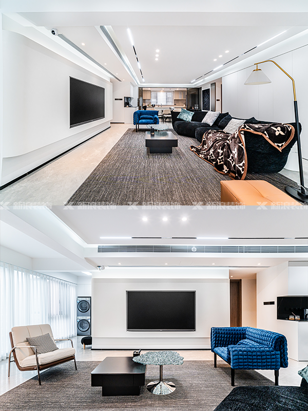 定制部分采用深壓紋柜門,即使大面積采用白色,也層次分明。