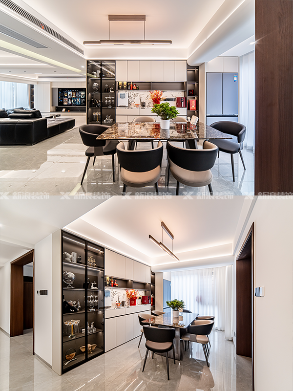 全屋通鋪:無門檻磚縫,從玄關(guān)到客餐廳無縫延伸,視覺上“無界”。