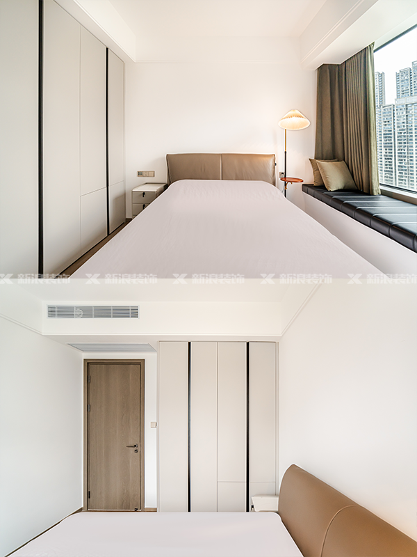 簡(jiǎn)約、線條明晰的白棕撞色,亮面750*1500大磚通鋪,通透明亮。