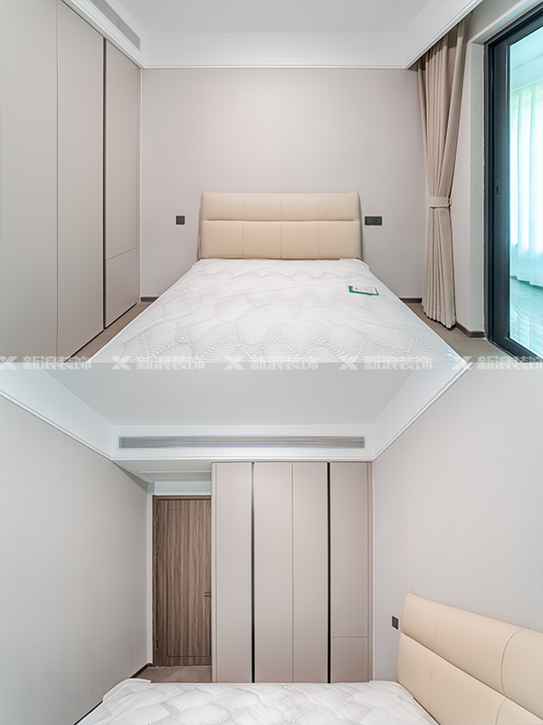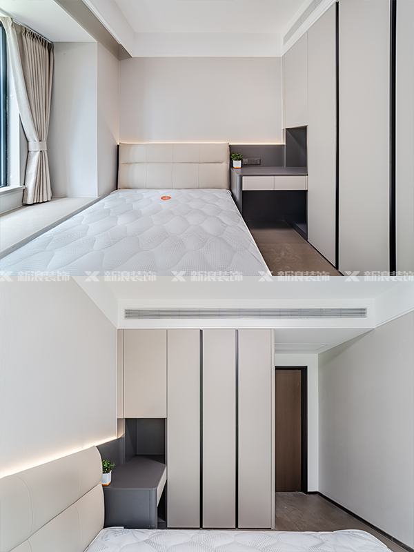 主臥把一個房間打通,做主臥連接衣帽間套房設計,把主臥空間拉大